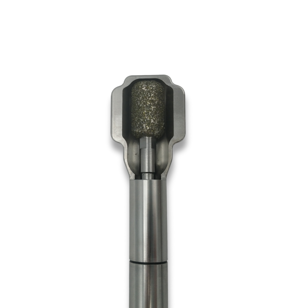 Dank drehbarem Kopf, geringer Kopfhöhe und seitlichen Schutzflügeln bearbeitest du selbst schwer erreichbare Backenzähne sicher und effizient